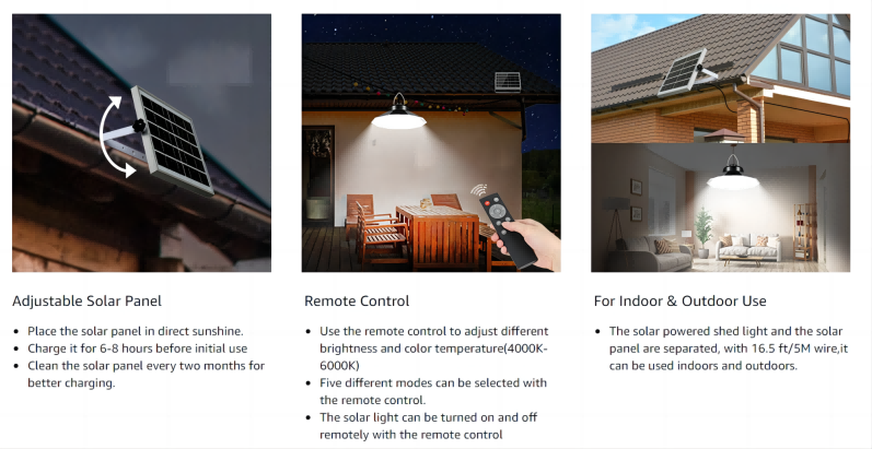 4. Bikaranîna Berfireh Ev çirayên şûştinê yên bi enerjiya rojê xwedî 3 Germahiya Reng in: 4000K-6000K (Germ, Spî, Rengê Têkel), 3 di 1 de, ku dikare hewcedariyên jîngeh û senaryoyên cûda bicîh bîne,